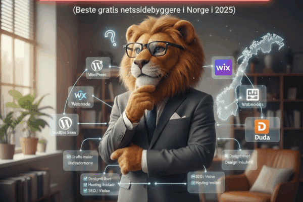 De mest kjente gratis nettsidebyggerne er Wix, Webnode, WordPress.com og Webflow. Alle tilbyr gratis plan med underdomene og ofte reklame. Det funker til testing og hobby, men for bedrifter i Norge lønner det seg som regel å velge en…